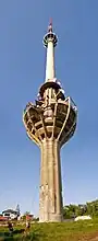 L'hôtel au sommet et, au second plan, l'émetteur de télévision. | ||