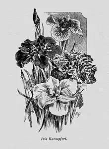 Le genre Iris contient 210 espèces et d'innombrables variétés horticoles. On trouve souvent dans les jardins des Iris hybrides horticoles appelés à tort Iris germaniques.
