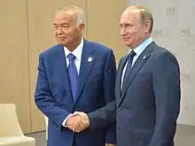 Coopérant militairement avec les États-Unis et économiquement avec l'Allemagne, l'Ouzbékistan est également liée avec la Russie, qui compte une forte diaspora ouzbek. Surtout jaloux de son indépendance, Karimov a fait quitter son pays de l'Organisation du traité de sécurité collective et a refusé d'adhérer à l'Union économique eurasiatique de Vladimir Poutine[12].