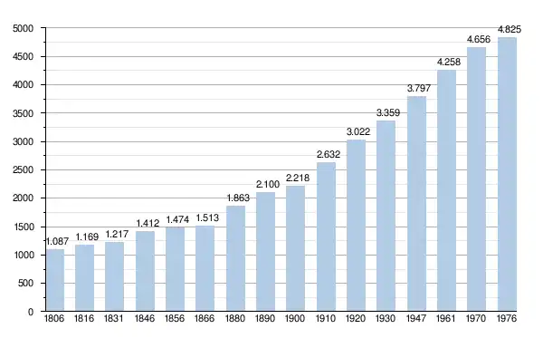 - Sources : INS, Rem. : 1831 jusqu'en 1970 = recensements, 1976 = nombre d'habitants au 31 décembre[3].