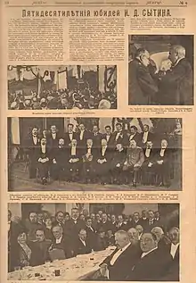 Le jubilé du cinquantenaire de la compagnie Sytine est fêté solennellement le 19 février 1917 avec en prime la sortie de la publication littéraire et artistique Un demi-siècle pour le livre, à laquelle participent Gorki, Kouprine, Roubakine, Roerich, Birioukov, environ deux cents auteurs au total[13]. Un millier d'invités sont réunis dans le grand auditorium du musée polytechnique, dont sa famille et ses employés.