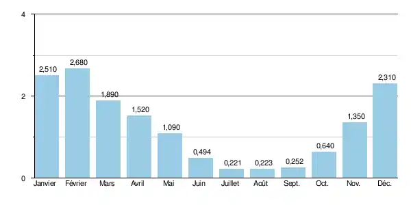 Ainsi les QIX 2 et QIX 5 valent respectivement 17 et 21 m3/s. Le QIX 10 est de 23 m3/s, le QIX 20 de 25 m3/s, et le QIX 50 de 28 m3/s.