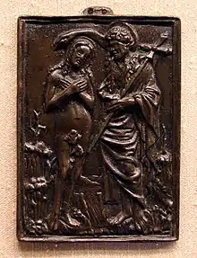 Les Évangiles synoptiques indiquent que Jésus de Nazareth a été baptisé par Jean le Baptiste dans le Jourdain et l'Évangile selon Jean, s'il ne rapporte pas le rite baptiste dans l'eau, évoque la descente de l'Esprit (Jn 1. 32)[52]. Ils donnent à Jean le Baptiste le caractère d'un précurseur (Mc 14-8 ; Jn 119-34). Ce baptême, rite d'initiation et de purification célébré une seule fois lors de la conversion, est évoqué par Flavius Josèphe[53]. Il a été conservé dans la pratique rituelle chrétienne.