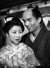 Avec Nobuko Otowa dans Histoire d'une épouse bien-aimée (1951).