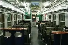 Les sièges sont des sièges transversaux . La palette de couleurs intérieures est composée de tons chauds similaires à ceux de la série 201 de la même période , et les cadres des sièges en croix sont marron foncé. Le système de climatisation est équipé du système de refroidissement central de type AU710 développé pour cette série