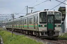 La série 719 (719系, 719-kei) (719けいでんしゃ/719 keidensha ou 719系電車) est un type de rames automotrices électrique (EMU), exclusivement à courant alternatif[Note 3], utilisées pour les services de banlieue et périurbains japonais, introduit en 1989 (Heisei 1) par la JR East, et actuellement exploitées dans la région nord de l'ile de Honshū, appelée communément le Tōhoku.