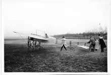 Jacques Balsan et son monoplan Blériot, lors de la grande semaine d'aviation d'Angers (3-).
