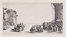 Il passe encore deux ans chez Giulio Parigi[27] à dessiner ou à graver différentes œuvres. En 1615, ce dernier se voit chargé par Cosme II de Médicis d'organiser des fêtes en l'honneur du prince d'Urbino. Giulio Parigi demanda alors à Callot de graver un certain nombre de grandes eaux-fortes pour conserver le souvenir de ces fêtes somptueuses. C'est pour Callot l'occasion de développer son talent : sa carrière est dès lors véritablement lancée, et se poursuit avec la réalisation des Caprices.