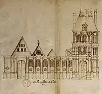 - Ce manuscrit contient le relevé du labyrinthe qui occupait l'espace entre la troisième et la quatrième travées de la cathédrale de Reims. Tracé en marbre noir dans le dallage de la nef, il avait une structure octogonale (il a été détruit par les chanoines en 1779).