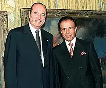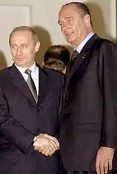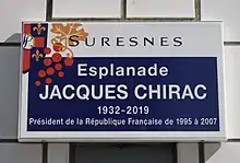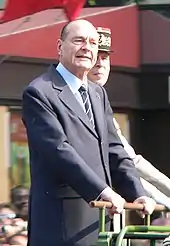 Jacques Chirac (/ʒak ʃiʁak/[alpha 2] ), né le dans le 5e arrondissement de Paris et mort le dans le 6e arrondissement de la même ville, est un haut fonctionnaire et homme d'État français. Il est Premier ministre de 1974 à 1976, puis de 1986 à 1988, et président de la République de 1995 à 2007.