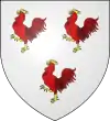D'argent, à trois coqs de gueules, becqués, membrés et crêtés d'or.[2]
