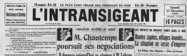 - L’Intransigeant, 18 avril 1933, p. 1, 5.