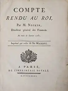 Necker cherche enfin à introduire de la transparence dans le fonctionnement de l’État. Il publie dans cet esprit en son Compte-rendu au Roi, dans lequel il détaille le fonctionnement des finances royales, les principes de son administration et la situation financière du pays.