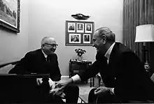En 1945, il demanda à Truman de ne pas occuper brutalement l'Allemagne, afin d'en faire un bastion contre le communisme et évoquant "les mongols barbares paradant en conquérants dans les rues de la civilisation occidentale"[1],[42]. De même, il fit voter une loi facilitant l'exportation de coton au Japon afin de reconstruire son industrie textile[43].