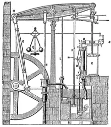 James Watt a adapté le régulateur à boules — déjà utilisé pour la régulation des moulins à vent et à eau — pour assurer la régulation de la vitesse d’une machine à vapeur. Il rajoute la jonction à mouvement parallèle qui convertit un mouvement circulaire en mouvement vertical et le diagramme indicateur de vapeur pour mesurer la pression de la vapeur dans le cylindre pendant le cycle de fonctionnement de la machine, montrant ainsi son efficacité.
