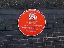 Plaque en hommage au travail de Gibson comme président de Manchester United de 1931 à 1951.