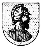 D’or à la tête de centurion romain carnation, coiffé d’un casque d’argent au cimier de gueules et vêtu d’une tunique de gueules.