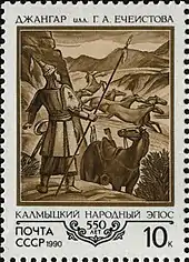 Illustration de Jangar de 1940 sur un timbre poste de l'union soviétique de 1990.