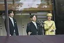 La population japonaise conserve généralement un fort attachement et une grande déférence à l'égard de l'empereur, dont l'anniversaire (天皇誕生日, Tennō Tanjōbi) est la fête nationale du Japon. De même, chaque règne correspond à une ère servant à dater les actes officiels et dont le nom devient l'appellation officielle de l'empereur après sa mort. L'empereur actuel (天皇陛下, Tennō Heika) depuis le , plus connu internationalement sous son nom de naissance Naruhito, est, selon la tradition, le 126e monarque japonais issu de la lignée Yamato par la déesse Amaterasu, régnant durant l'ère Reiwa (令和時代, Reiwa-jidai, Reiwa signifiant « belle harmonie »). Accompagné de serviteurs portant le bicorne (symbole remémorant les liens étroits entre le Shogunat Tokugawa et l'empereur Napoléon III), l'empereur Naruhito monte en calèche le pour une visite au Naiku, ou sanctuaire intérieur, du sanctuaire d'Ise Jingu afin de rendre compte à Amaterasu-omikami, la légendaire déesse du soleil, de l'achèvement de ses cérémonies d'intronisation[22]. La succession au trône se fait selon la loi de la maison impériale de 1947, par primogéniture masculine au sein des descendants, en ligne masculine exclusivement, de l'empereur Taishō. Les filles nées au sein de la famille impériale la quittent une fois mariées, et ne transmettent donc aucun droit à la succession. Le reste de l'ancienne noblesse japonaise (華族, kazoku, littéralement « ascendance fleurie ») a été aboli en 1947.