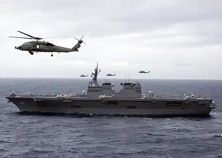 Depuis , les forces japonaises d'autodéfense peuvent être utilisées en dehors du pays, pour soutenir un allié[42].