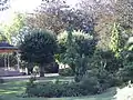 En continuant au-delà de la fourche par l'allée la plus proche de l'enceinte, le visiteur trouve un Érable de Montpellier, ou Acer monspessulanum[7], un peu avant l'arrivée sur le bassin. A l'extrémité opposée du bassin s'élève un tilleul lacinié, aux feuilles profondément dentées, assez inhabituel. Passant sur le petit pont, au-dessus du bassin, il contourne le kiosque à musique en longeant une rangée de tilleul à grandes feuilles, puis peut prendre une allée vers la roseraie, en passant devant un Laurier-cerise[8] puis une série de chèvrefeuille en forme de nid, ou Lonicera nitida[8], arbustes originaires de Chine introduits en Europe en 1908[8]. En bifurquant vers le jardin pour enfants, il peut observer la plus ancienne famille d'arbres connue, puisqu'elle serait apparue il y a plus de 270 millions d'années, un arbre aux 40 écus, ou Ginkgo biloba, mâle[9]. Puis un Cyprès chauve[7] ou cyprès de Louisiane, et à deux pas, un Callicarpe de Bodinier, entre un Weigelia, un Lonicera et un Pinus mugo[10]. Un peu plus loin encore, à proximité du jardin pour les enfants, trois Paulownia tomentosa[7]. Retour par la roseraie, puis par une allée arrivant à une tonnelle entourée de buissons ardents, ou Pyracantha coccinea. Une allée conduit à la maison du garde, entourée d'hortensia, d'un pommier à feuilles de prunier ou Malus prunifolia, d'un charme, d'une seringat, d'une symphorine blanche, d'une corète du Japon et d'une Aucuba japonica. De là une autre allée longe l'enceinte pour mener au point de départ, l'entrée située avenue Philippoteaux. Dans cette dernière allée, il peut admirer une série de Magnolia de Soulange[11], ainsi qu'un arbre aux 40 écus, ou Ginkgo biloba, femelle cette fois[9].