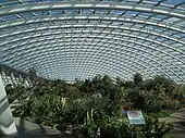 Le jardin possède la plus grande serre, the Great Glasshouse, à travée du monde, elle reconstitue le paysage méditerranéen[1].