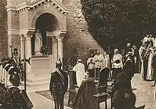 La tradition veut que, sur le site du jardin du Vatican, de la terre apportée de Golgotha ait été épandue par sainte Hélène[1],[2] pour unir symboliquement le sang du Christ et les sépultures des milliers de premiers chrétiens, morts à la suite des persécutions de Néron[1].