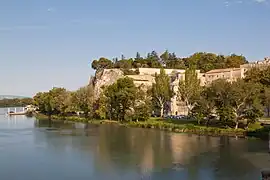 Une importante esplanade offre un point de vue panoramique à 30 m de hauteur (avec table d'orientation) sur Avignon et ses environs, sur le Rhône (en contrebas), et sur le pont d'Avignon (ou pont Saint-Bénézet), l'île de la Barthelasse, les Fort Saint André, tour Philippe-le-Bel et Chartreuse Notre-Dame-du-Val-de-Bénédiction de Villeneuve-lès-Avignon (en face), le tout (selon la clarté de l'horizon) sur fond de vallée du Rhône, mont Ventoux, Châteauneuf-du-Pape, massif du Luberon, massif des Alpilles, Comtat Venaissin, jusqu'aux Dentelles de Montmirail[8]...