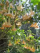 - L’étage des fleurs : Un étage intermédiaire est dédié aux arbustes à fleurs : brugmansia dont les lourdes fleurs en calices pendants apparaissent dans les gravures, lauriers roses, hibiscus, jasmins, rosiers, chèvrefeuilles, citronniers ou orangers. Les arbustes sont choisis pour l’exubérance de leur floraison autant que pour leur parfum. Ils attirent oiseaux et papillons.