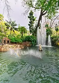 Cet espace vert dispose également d'un bar-terrasse, d'un kiosque et d'une petite lagune peuplée de cygnes et de canards, avec des fontaines et un motif sculptural en marbre, communément appelé « Meninos » (en français Les petits enfants), basé sur un socle en béton, de l'auteur António María Ribeiro (1943)[1],[2],[3],[4].