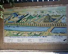 - Ce bas-relief est conservé au British Museum, sous la référence ME 124939A (Stone panel from the North Palace of Ashurbanipal, Room H, nos. 7-9). Mme Dalley pense que les arches, correspondent en forme et en taille, à ce qui reste de l'aqueduc de Jerwan, en Irak
