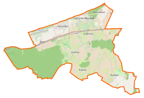 Carte de la gmina de Ustronie Morskie.