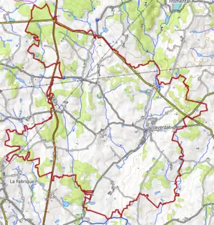 L'occupation des sols de la commune, telle qu'elle ressort de la base de données européenne d’occupation biophysique des sols Corine Land Cover (CLC), est marquée par l'importance des territoires agricoles (78 % en 2018), néanmoins en diminution par rapport à 1990 (82 %). La répartition détaillée en 2018 est la suivante : prairies (50 %), zones agricoles hétérogènes (23,4 %), forêts (18 %), terres arables (4,6 %), milieux à végétation arbustive et/ou herbacée (2,5 %), zones urbanisées (1,6 %)[15]. L'évolution de l’occupation des sols de la commune et de ses infrastructures peut être observée sur les différentes représentations cartographiques du territoire : la carte de Cassini (XVIIIe siècle), la carte d'état-major (1820-1866) et les cartes ou photos aériennes de l'IGN pour la période actuelle (1950 à aujourd'hui)[Carte 1].