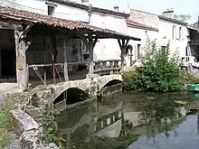 - De nombreuses maisons et fermes caractéristiques de l'architecture rurale des XVIIe siècle au XIXe siècle sont étudiées et repérées sur la base Mérimée. Elles forment une architecture charentaise classique avec les murs blanchis et les toitures de tuile tant dans le village bâti sur la pente que dans l'habitat dispersé sur le reste de la commune. Le long de l'Antenne se trouvent deux lavoirs : un dans Javrezac et un, en aval, à Gade-Chien et deux moulins dont les bâtiments actuels sont du XVIIIe siècle remaniés au XIXe siècle[50]. Le moulin des Angeliers est situé en amont dans une partie de la rivière à plusieurs bras munis d'un système complexe d'écluses, alors que le moulin de Javrezac est situé dans le village.