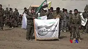 Jaych al-Thuwar est composé d'Arabes, de Turkmènes et de Kurdes[7],[3]. Il rassemble à l'origine sept groupes :