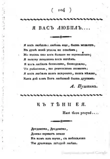 « Je vous aimais » (russe : Я вас любил - Ya vas lyubíl) est un poème d'Alexandre Pouchkine écrit en 1829 et publié en 1830. Il a été décrit comme « l'énoncé par excellence du thème de l'amour perdu » dans la poésie russe[1] et un exemple de l'attitude respectueuse de Pouchkine envers les femmes[2].