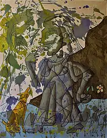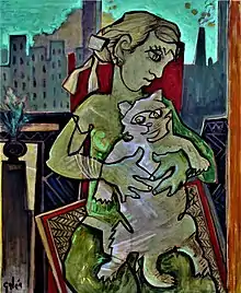 CAMILLE ET SON CHAT. Année 2020. Technique mixte sur toile. Hauteur : 72.5 cm. Largeur : 60 cm. - André Nébon (ill. Jean François Galéa), 1914-2014, centenaire de la Grande guerre : hommage, Paris, chez l'auteur, , 21 p. (OCLC 906264547)