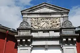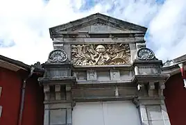 Les frontons de ce qui était alors une école professionnelle (relevant de l'enseignement primaire supérieur), devenue depuis le cours complémentaire de garçons puis l'école primaire Honoré Auzon[9], sont représentatifs de la virtuosité atteinte par les tailleurs de pierre lourdais entraînés dans leur art par l'architecte de la ville Jean-Marie Lacrampe.
