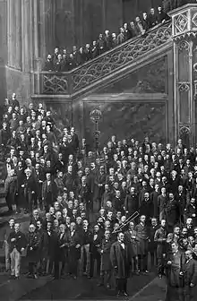 En , au cours d'un voyage à Moscou et Saint-Pétersbourg, Charcot est acclamé et célébré par ses collègues comme un thaumaturge[33]. En août, il connaît la consécration internationale au Congrès international de médecine de Londres. Il fait sensation en présentant le moulage en cire et le squelette d'une patiente atteinte d'ataxie locomotrice[34]. C'est à cette occasion que le président du congrès, James Paget, propose d'appeler désormais cette pathologie « Charcot disease »[33], proposition qui ne fera pas florès d'autant qu'en français « maladie de Charcot » désignera une autre maladie neurodégénérative. La gloire de la médecine française est applaudie longuement par les trois mille représentants venus du monde entier[34]. Reçu avec Louis Pasteur et Rudolf Virchow par le prince de Galles, il voit son visage et celui de ses deux collègues dessinés par un feu d'artifice[33].
