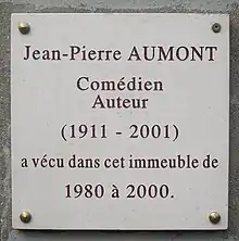 Une plaque en hommage à Jean-Pierre Aumont est dévoilée le au 4, allée des Brouillards, dans le 18e arrondissement de Paris, où il a longtemps habité.