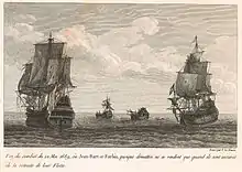 Malgré l'inégalité des forces en présence (il ne dispose que de sept bâtiments de rang inférieur à ceux des ennemis[17]), Jean Bart entreprend de la récupérer. Après un combat acharné, au cours duquel l'amiral hollandais Hidde Sjoerds de Vries est grièvement blessé et capturé, il parvient à reprendre la flotte et la ramène en France.