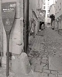 Entrée de l'impasse des Arbalétriers (2014) avec une borne historique rappelant le meurtre de Louis d'Orléans en 1407.
