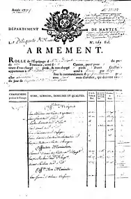 Ainsi sont armés 5 navires et 3 corvettes représentant 945 tx. qui vont transporter plus de 900 esclaves le plus souvent vers la colonie de Saint-Domingue[Notes 8]. Le retour de ces bateaux s'échelonne dans le temps. Mais quand le Terray et la Belle nantaise reviennent à Nantes en novembre 1774 et janvier 1775, Peltier Dudoyer doit les réexpédier d'urgence au Havre pour être vendus, car Montieu est toujours en prison.