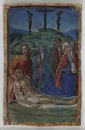 - Feuillet d'un livre d'heures destiné à Anne de Bretagne (Déploration sur le corps du Christ), vers 1493-1497, Free Library of Philadelphia, M.11-15a[25]