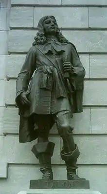 Une statue de Jean Talon apparaît sur la façade de l'hôtel du Parlement de Québec.