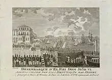 Pendant un mois, Salvador célèbre la présence de la cour en son sein. Les autorités municipales cherchent à séduire le régent afin de le persuader d'établir le siège de son royaume dans la ville et vont jusqu'à lui proposer d'y construire un luxueux palais pour accueillir la famille royale. Cependant, Jean décline cette offre et fait connaître aux habitants sa volonté de s'installer à Rio de Janeiro. La cour reprend donc sa route et arrive dans la baie de Guanabara le . À Rio, le régent retrouve son épouse, ses filles et d'autres membres de sa suite, dont les navires ont été séparés de son escadre pendant le voyage et qui sont arrivés à destination avant lui. Le 8 mars, toute la cour débarque finalement dans la capitale du Brésil. Le régent et son entourage découvrent alors une ville entièrement décorée pour recevoir la famille royale et des festivités sont organisées en son honneur durant neuf jours[30].