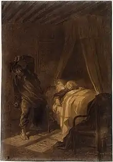 Gravure de Louis Muller d'après une illustration de Pierre Georges Jeanniot, 1891.