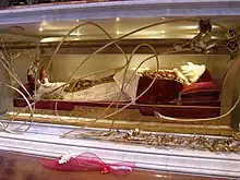 À l'ouverture en du triple cercueil en sapin, chêne rouvre et plomb où il reposait, son corps est découvert en excellent état de conservation[18], conséquence de l'intervention, quelques heures après la mort, d'un expert en traitement des cadavres, Gennaro Goglia, qui le révèlera dans le numéro de du magazine Famiglia Cristiana[19]. Complété d'un masque de cire, il repose depuis lors dans un cercueil de cristal sous l'autel de la chapelle Saint-Jérôme de la basilique Saint-Pierre[18].