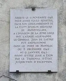 Le , le général Giraud, qui vient de s'évader de la forteresse de Königstein et qui commence à prendre des contacts pour ses projets d'avenir, rencontre de Lattre à Montpellier mais il le trouve « prudent et évasif »[19]. En , contacté par Jean Moulin pour prendre la tête de l'Armée secrète, de Lattre refuse[20]. À la même époque, il obtient pour le philosophe Jean Cavaillès, qu'il estime, un droit de visite, qui lui permet d'obtenir les livres nécessaires à la rédaction de son livre Sur la logique et la théorie de la science [21].