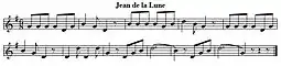 Jean de la Lune est une comptine écrite par Adrien Pagès[1]. Elle fut publiée pour la première fois dans un ouvrage de solfège par Claude Augé en 1889. La musique est d'un auteur inconnu, le thème est peut-être inspiré d'une chanson militaire plus ancienne. La particularité de cette mélodie est d'être construite sur les trois notes de l'accord parfait.